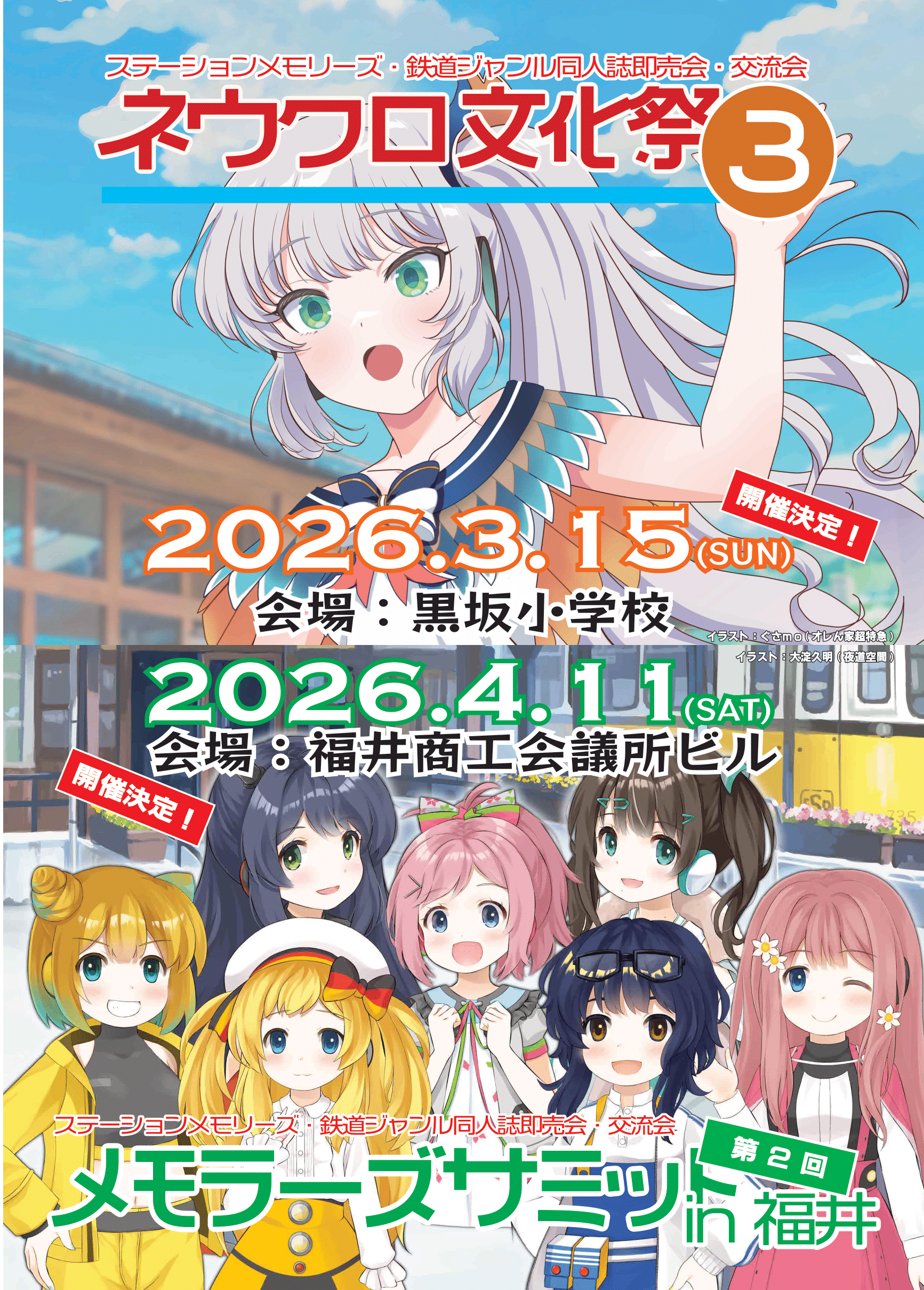 ☆「メモラーズサミット6 in福井」「メモラーズサミット6 in福井」は、スマートフォン向けアプリ「駅メモ!」の二次創作物及び「鉄道・旅行ジャンル」の即売会・交流イベントです。◆イベント名メモラーズサミット6 in福井(#メモサミ6)◆開催場所福井県福井市 福井商工会議所ビル 2階A&B会議室〒918-8580 福井県福井市西木田2-8-1◆開催日時2026年4月11日(土)12:00~15:30予定場所は再び、不死鳥の街・福井県福井市、「福井商工会議所ビル」。